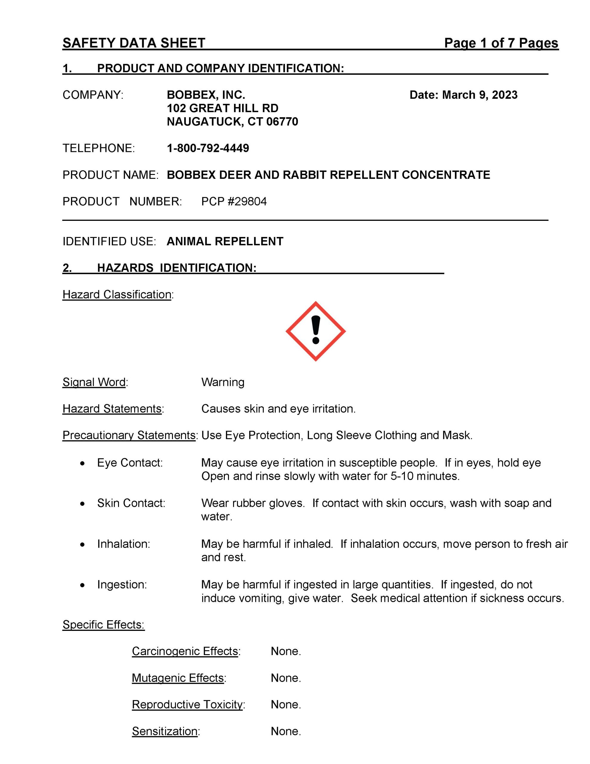 Bobbex Deer & Rabbit Repellent Commercial SDS