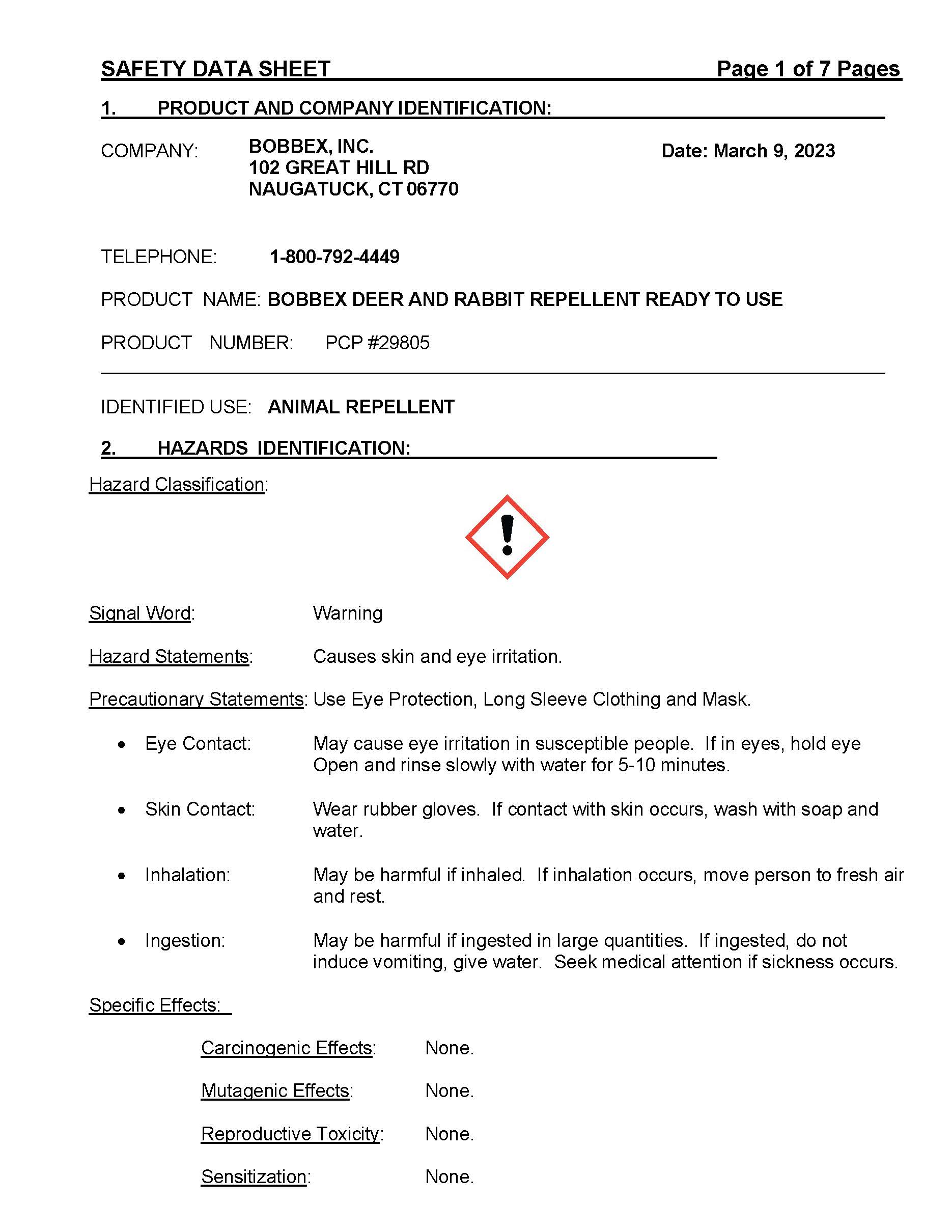 Bobbex Deer & Rabbit Repellent Ready-to-Use SDS